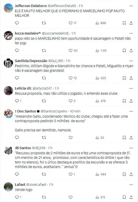 Importante destacar também que o próprio Weslley Patati tem o desejo de seguir no Santos e buscar conquistas com o clube de formação, especialmente depois de ficar fora da Copinha, por já estar incluído no profissional, mas na Lista B do Paulistão.