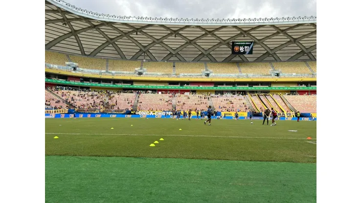 Começa a chover forte em Manaus momentos antes do inicio da partida.
