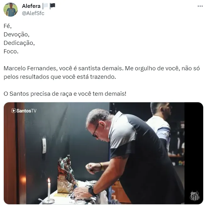 “Vão com a gente até o fim porque sabem quem tá desse lado, sabe que essa molecada tá dando a vida até o fim por esse clube”, concluiu o treinador, exaltando os torcedores do Santos.