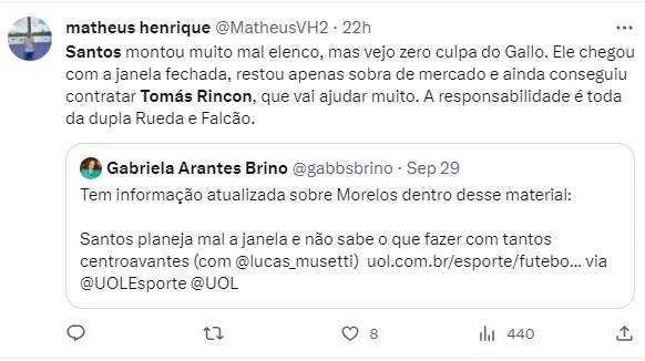 Você acha que Tomás Rincón pode influenciar em uma recuperação do Santos?