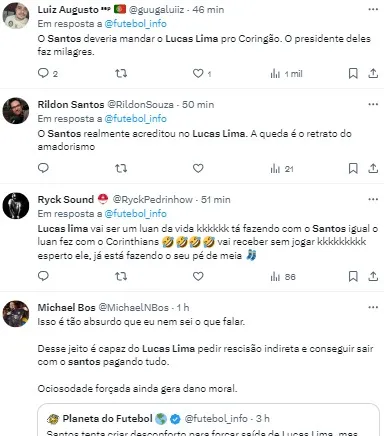 O que dizem os torcedores do Santos sobre Lucas Lima: