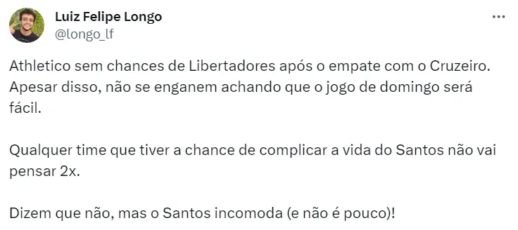Agora, o Santos vai até a Arena da Baixada para encarar o Athletico Paranaense mais uma vez. A bola rola às 18h30 (horário de Brasília), pela 37ª rodada do Campeonato Brasileiro.