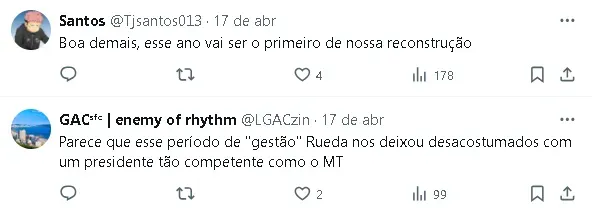 Além disso, Teixeira também revelou que a folha salarial do departamento de futebol masculino do clube é de R$ 11,5 milhões, e que foram pagos R$ 58 milhões em dívidas, incluindo a relacionada à demissão do técnico Fabián Bustos e outras obrigações do exercício do ano passado.