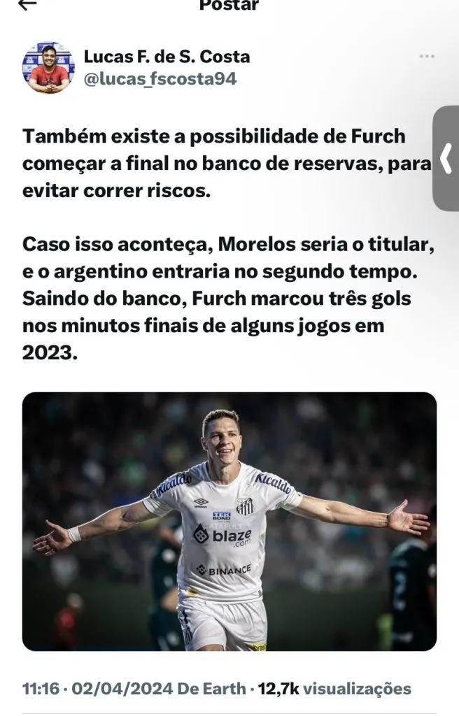 Por mais que seja um caso mais sério, o consenso do jogador com as partes citadas acima, demonstra o desejo geral da sua presença na decisão. Furch é titular absoluto no Alvinegro.