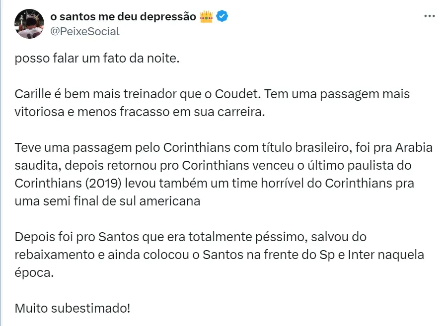 Com a queda técnica da equipe santista nos últimos jogos, o apresentador Neto aposta que a Portuguesa vai eliminar o time de Carille. Porém, não acredito que o Alvinegro Praiano terá dificuldades neste confronto.