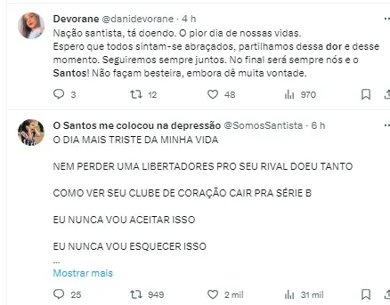 O Santos terminou o pior ano da sua existência tendo o caminho mais difícil a percorrer. Os erros cometidos custaram caro, se for analisar por um todo, o Santos não jogou bola, o Santos fez por merecer esse rebaixamento, obviamente, quem paga o pato é a torcida. Para 2024 fica o aprendizado de como uma péssima gestão e todo um contexto pode decretar que um dos maiores clubes do Brasil amargue na Segunda Divisão.