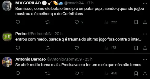 O treinador também comentou sobre a mudança no esquema tático da equipe, principalmente em relação ao uso de três zagueiros. Ele explicou que essa estratégia funcionou contra outros times, mas no jogo em questão, o meio-campista Yuri acabou ficando isolado na frente.