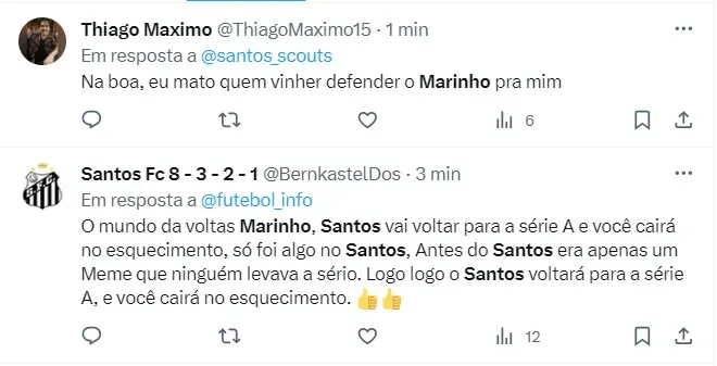 Após a repercussão, na manhã deste sábado (9), Marinho pediu desculpas nas redes sociais aos torcedores santistas. Em uma das partes da nota, ele se expressa assim: “Mas, deixei a raiva me consumir, os xingamentos que sofri no jogo todo me deixou com raiva e despejar tudo que recebi dos verdadeiros torcedores nos quase 3 anos de clube, não dos 15 mil que ali estavam!”, diz parte do comunicado.