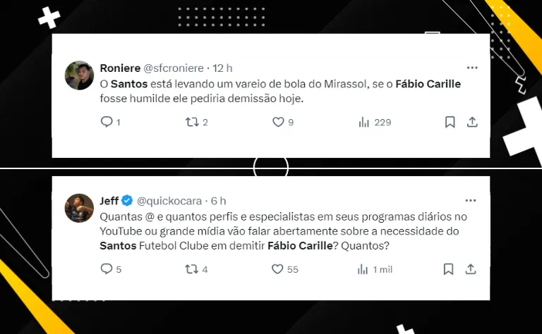 Desta forma, a gestão deve analisar a situação de Carille com cautela internamente, para pensar e entender o que é melhor para o Peixe nesse momento. Desta forma, a demissão não está totalmente descartada.