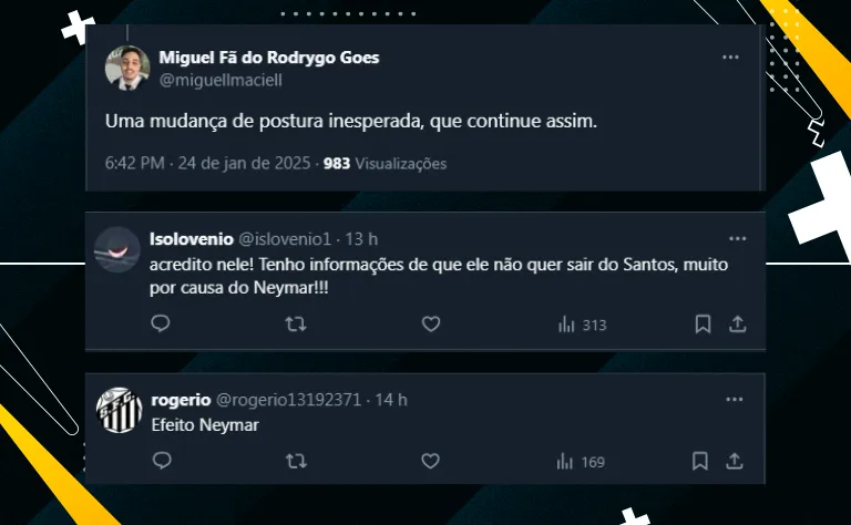 Após o pedido de desculpas do atacante, diversos torcedores santistas foram até as redes sociais e se mostraram surpresos com a atitude. Confira alguns comentários sobre o tema abaixo: