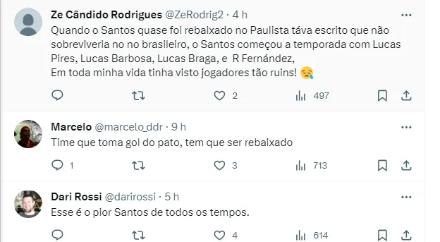 Reações de torcedores sobre a queda do Santos