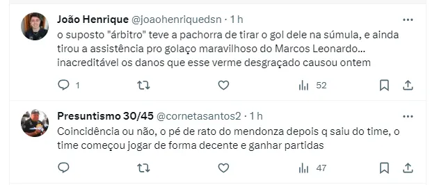 Inclusive, o Alvinegro Praiano também foi alvo de uma arbitragem polêmica. O pênalti marcado a favor do Coritiba, uma suposta mão do lateral-esquerdo Dodô, e o gol anulado de Marcos Leonardo, foram alvos de discordância de muitos, seja por parte da imprensa, como de torcedores. Agora, o time de Marcelo Fernandes segue em sua luta de se distanciar da zona de rebaixamento.