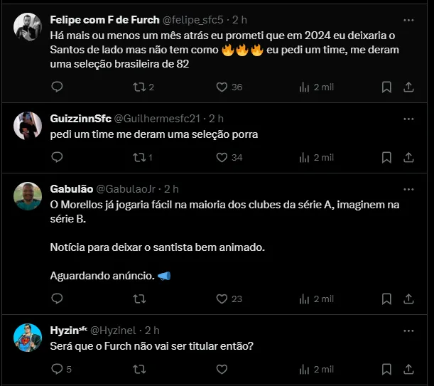 Segundo Vagner Frederico, o Santos chegou a um acordo com Morelos, ou seja, o atacante permanece no clube e jogará a 2ª divisão do futebol nacional. A princípio, o centroavante aceitou diminuir o salário.