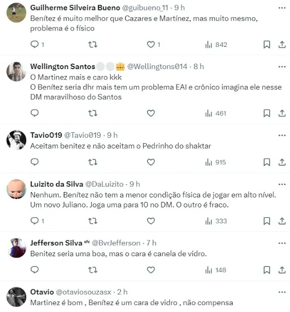 Martínez chegou a receber uma proposta do Cruzeiro no começo deste ano, mas o Coelho negou por considerar o valor baixo. Benítez fez uma boa temporada no ano passado e torcedores começaram a cogitar a contratação.