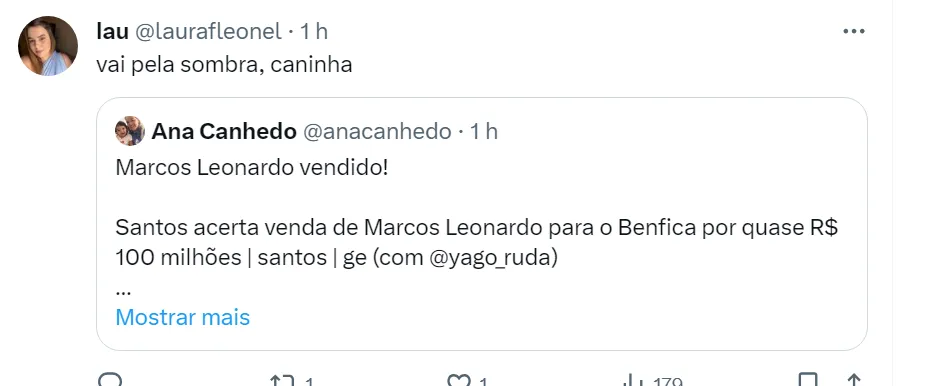 O Peixe fechou a venda do Menino da Vila para o Benfica, de Portugal, por 18 milhões de euros (R$ 96 milhões na cotação atual), o que foi comemorado pela torcida do Clube da Vila Belmiro na web.