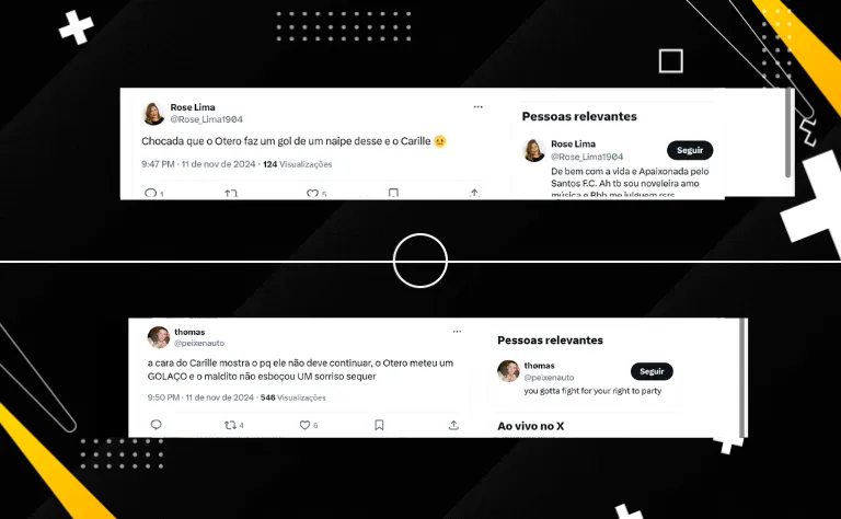 Na web, os santistas apontaram que o ‘último ato’ de Carille – que enterrou qualquer chance de permanência – foi sua apatia no banco. Especialmente após o golaço de Otero, que fez uma obra-prima em falta no fim do 1º tempo.
