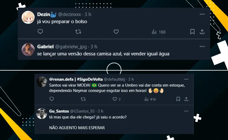 Dito tudo isso, como o Santos não vive temporadas muito proveitosas recentemente, o simples fato do Peixão estar projetando esse “lançamento nostálgico” repercutiu de forma muito positiva na torcida. Confira: