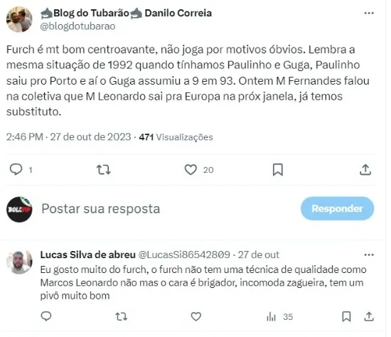 Essa ausência na frente faz com que outra peça ganhe uma oportunidade considerada de ouro: Julio Furch. Contratado como ‘sombra’ do jovem titular, o gringo vem deixando boas impressões até aqui.