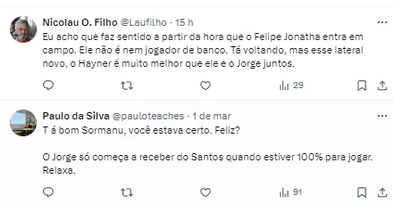 Santistas falam sobre elenco na web