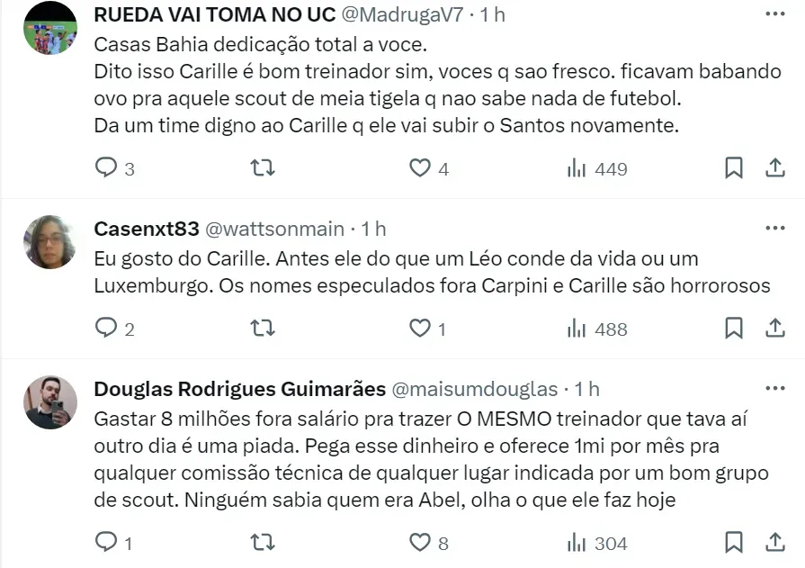 Carille passou pelo Santos entre 2021 e 2022, ainda sob a gestão de Andrés Rueda. Marcelo Teixeira, eleito presidente do Peixe para o próximo triênio, vê o treinador como nome certo para conduzir o time de volta à Série A.