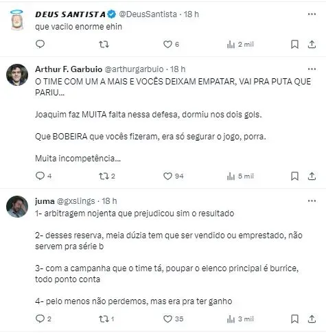 Ao menos, o treinador viu um dos novos reforços do Santos desencantar e marcar seu primeiro gol com o Manto Sagrado, já que Willian Bigode foi autor do tento que chegou a virar a partida, porém, a torcida do Peixe não amenizou e criticou a postura do time.