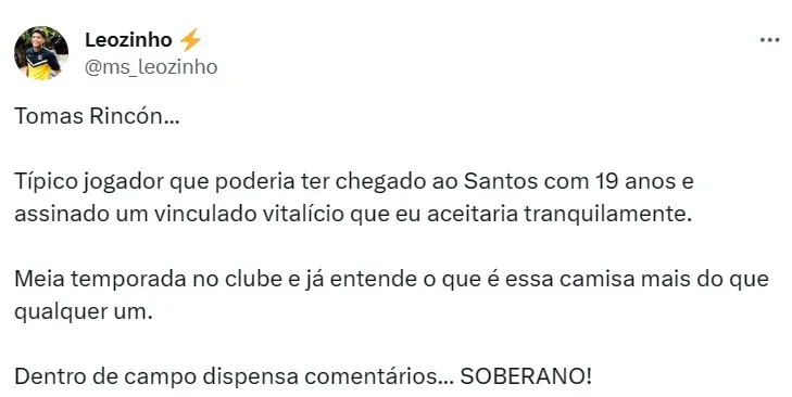 Depois de deixar a Sampdoria, da Itália, Tomás Rincón ficou livre no mercado e assinou com o Santos até o fim de 2024. Ainda não é falado em renovação contratual, mas a importância do venezuelano é valorizada.