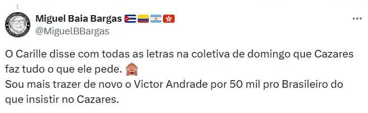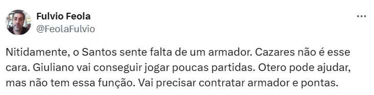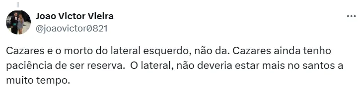 E por falar em Cazares e Carille, o treinador santista não deixou passar a oportunidade de defender o equatoriano, muito criticado por parte da torcida. Para alguns, o meia não criou oportunidades para gol.