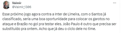 Por outro lado, Jorge Nicola revelou a possibilidade de João Paulo deixar o Santos. Especula-se que o clube o tenha oferecido para outras equipes brasileiras.