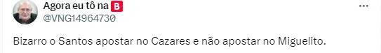Ainda assim, muitos torcedores contestam o fato dele utilizar a camisa 10, um dia já utilizada por ninguém menos que Pelé. O entendimento é que o atleta não vem jogando o suficiente para justificar a vestimenta.