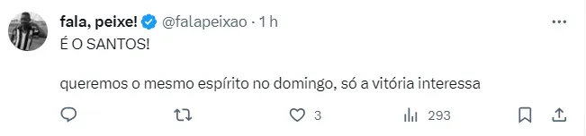 Atualmente o Santos está na 13ª posição do Brasileirão, com 41 pontos feitos. O Peixe conta com o apoio da torcida para somar o máximo de pontos possíveis até o final do campeonato.