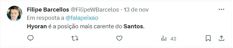 Uma notícia que mexeu nos bastidores do Santos foi que o Atlético-MG não pretende permanecer com Hyoran para a próxima temporada, conforme informações do jornalista Lucas Tanaka. Vale destacar que o jogador despertou o interesse do Peixe diante da oportunidade de mercado.