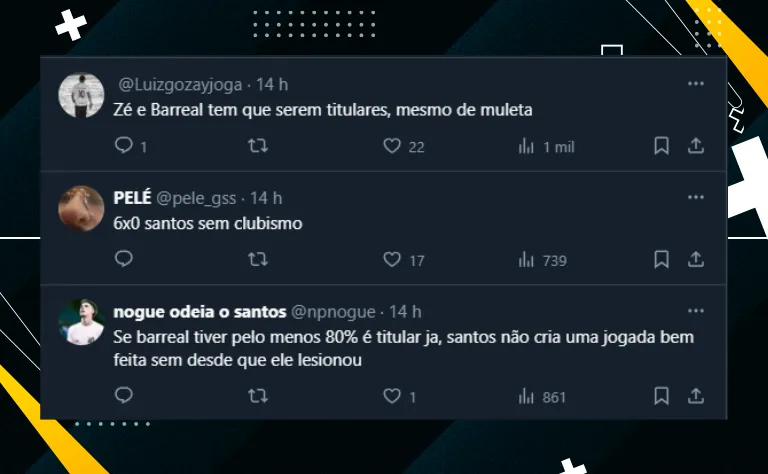 Dito isso, apesar de Cléber Xavier ainda estar no início do trabalho, ele vem sendo muito questionado. Neste domingo (11), após a divulgação que Zé Rafael, Barreal e Souza foram relacionados, os santistas resolveram se manifestar.