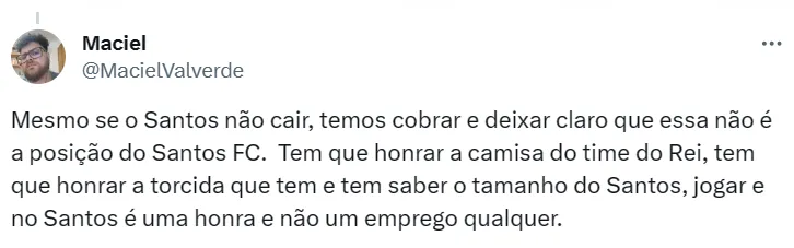 No returno do Campeonato Brasileiro, o Peixe faz campanha de campeão e ainda sim é um dos cotados para ser rebaixado. No momento, o time da Vila Belmiro é o 15º colocado, com 43 pontos conquistados.