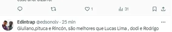 Teria pesado a favor de Giuliano sua regularidade em 2023 pelo Corinthians. Em 59 jogos, ele não teve muitos problemas de lesões e nem de cartões, mas conviveu com o banco de reservas do rival do Peixe durante a temporada.