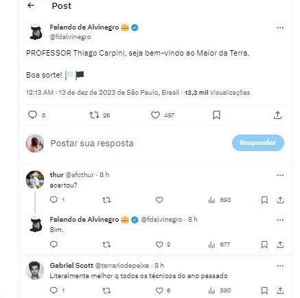 Além disso, as ideias modernas de jogo também chamou a atenção dos santistas. Carpini tem um perfil estudioso, ele vem se preparando ao longo dos anos para assumir um clube com grande expressão.