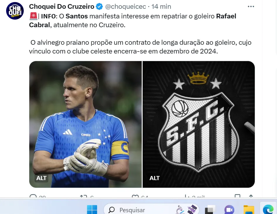 Aos 33 anos, Rafael sabe da situação financeira do Santos e da necessidade de diminuir a folha salarial em 2024. Inclusive, em partida que o Cruzeiro venceu o Peixe na Vila, ele revelou que torcida para o Alvinegro escapar do descenso.