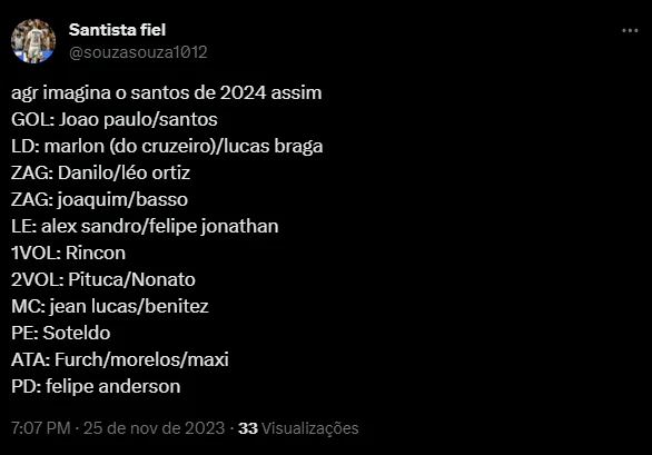 A posição de lateral, tanto direito quanto esquerdo é uma das mais carentes no elenco atual do Santos. Na esquerda, Dodô foi contratado, mas vive com altos e baixos, enquanto o garoto Kevyson vem sendo titular.