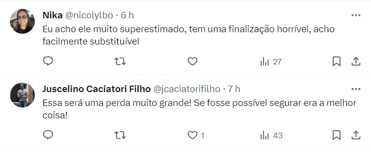 Vale destacar que outros interessados pela contratação do volante foram o Cruzeiro e Fluminense. O Tricolor, inclusive, buscando o acerto com o volante na expectativa que pudesse suprir uma possível saída de André.