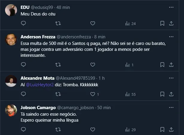 Vale ressaltar que, após ser contratado pelo Santos no último Paulistão por um “salário simbólico”, ele renovou seu vínculo e ajustou os vencimentos depois do estadual. Com isso, passou a receber R$ 350 mil mensais.
