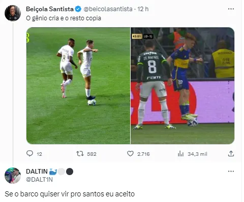 Nas redes sociais, muitos santistas se manifestaram pedindo a contratação do meia do Boca Juniors para o Santos. “Se o Barco quiser vir pro Santos eu aceito”. “Bem que o Santos podia contratar esse Barco”. “Santos Futebol Clube, seja bem vindo, Barco, venha pegar a nossa lateral esquerda”. “Barco é muito Santos”.