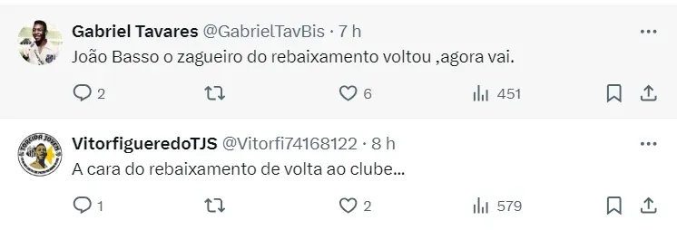 Marcelo Teixeira revelou que João Basso vai retornar para a Vila Belmiro após uma decisão junto a comissão técnica, visando a evolução da equipe na temporada. O mandatário fez questão de garantir que isso também é uma vontade do jogador. Em contrapartida, o presidente aguarda proposta por Morelos.