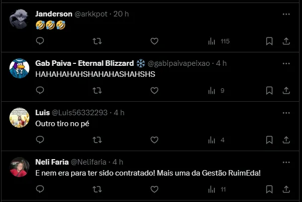 Contratado na última janela de transferência, Júnior Caiçara atuou em apenas cinco oportunidades. Camacho e Maximiliano Silveira também não agradaram ao longo da temporada de 2023.