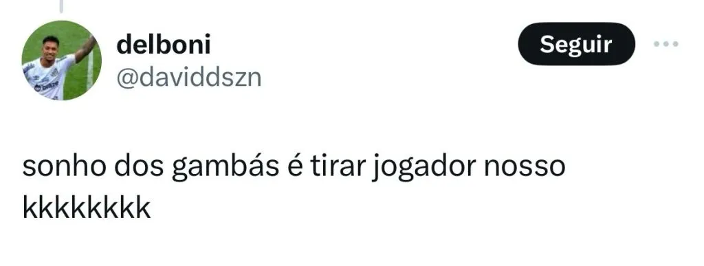 “Tem vários jogadores que têm a cara do Corinthians. Gosto de vários, que vestiriam muito bem essa camisa. O próprio Gabigol tem a cara do Corinthians, é um jogador guerreiro, sabe fazer gol. Estou só citando um exemplo, porque tem contrato e o salário dele é muito alto, mas é um jogador que gosto”, disse o futuro presidente do rival do Peixe.