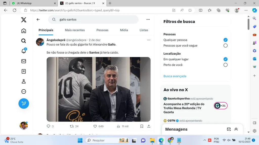 O contrato de Gallo no Santos expira em dezembro de 2024. Eventual demissão significa pagar uma multa também ao dirigente, obviamente não tão alta em relação a jogadores caros no elenco, como Morelos, Soteldo, Jean Lucas, entre outros.