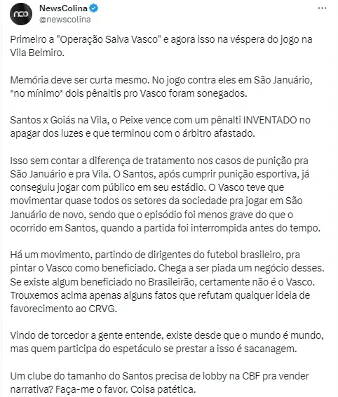 “Vasco sofrendo Transfer Ban??? Ai ai essa operação salva Santos“, brincou outra torcedora.