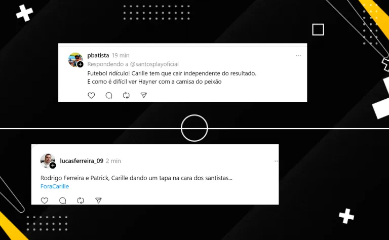 “Mais um jogo péssimo do Santos, time sem intensidade nenhuma, até quem tem talento não consegue render nesse time. Fora, Carille”, disse um torcedor na rede social do Thread (veja outros comentários no fim da matéria).