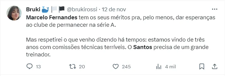Atualmente, o Menino da Vila faz parte do dia a dia do técnico Marcelo Fernandes, mas vem sendo utilizado apenas para completar os treinamentos. Diante disso, a tendência é que não permaneça para a próxima temporada.