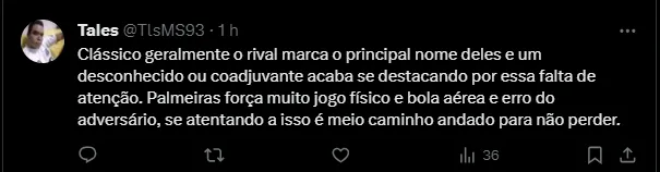 O clássico foi assunto no Santos, com o volante Diego Pituca, um dos reforços do rival, analisando o confronto e mandando um recado para o Palmeiras. O camisa oito do rival analisou a equipe de Abel Ferreira, mas fez uma ressalva.
