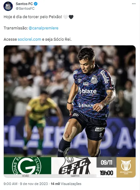 O Santos entra em campo nesta quinta-feira (9) para enfrentar o Goiás fora de casa. Em confronto fora de casa, o Peixe busca aliviar ainda mais sua situação na tabela do Brasileiro em partida da 33ª rodada.