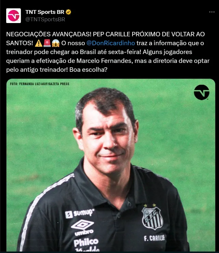 Vale destacar que o comunicador ressaltou que parte do elenco chegou a pedir a efetivação de Marcelo Fernandes, após o último jogo. Mas a diretoria optou em buscar o retorno de Carille por acreditar que para o momento do Alvinegro é o melhor. Objetivo principal é que o novo comandante já prepare a equipe para o confronto direto contra o Vasco. Já que é um concorrente direto da equipe na briga para deixar o Z-4 do Brasileiro.